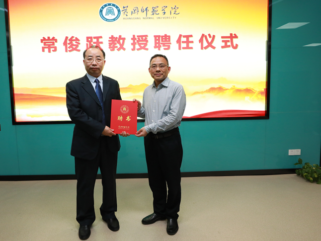 我校举行了客座教授聘任仪式。漆昌柱为常俊跃颁发了客座教授聘书,并对常俊跃的到来表示热烈欢迎,对他受聘担任我校客座教授表示衷心感谢。