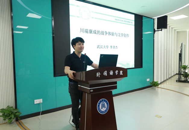 5月30日下午,武汉大学外国语言文学学院院长、博士生导师李圣杰教授应邀在圆楼202室做了一场题为《川端康成的战争体验与文学创作》的学术报告。williamhill英国副院长郑新刚主持报告活动,日语专业全体师生现场聆听。