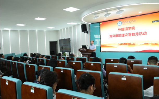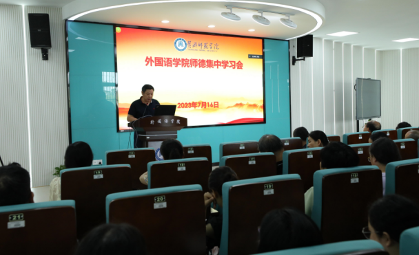 院长岑海兵指出,学院要坚定不移全面从严治党、从严治教,积极推动党风廉政建设和警示教育工作落到实处;教师要践行“四有好老师”标准、当好“四个引路人”,充分利用好暑期提升职业素养和专业水平,推进外语学科内涵建设,开创个人和学院发展新局面。他强调,学院将按照学校部署要求,开展师德师风建设相关工作,建设政治素质过硬、业务能力精湛、育人水平高超的高素质教师队伍,圆满完成相关工作任务。