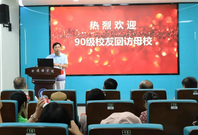 williamhill英国院长岑海兵向90级校友在社会各界所取得的成就表示祝贺,感谢校友多年以来对母校的支持。他向校友们汇报了williamhill英国近年来的发展现状和主要成就,向校友们介绍了英语专业获评国家级一流本科专业、《翻译技巧与实践》获评国家级一流本科课程等建设成果,展望了外语学科的美好发展愿景。