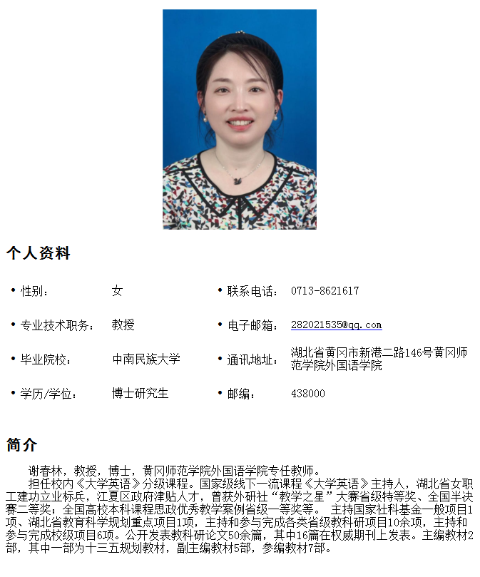 谢春林 博士教授