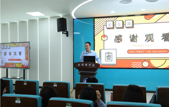 10月12日下午,谢春林博士应邀在圆楼202外语教师发展工作室做了一场题为“国家级一流本科课程《大学英语》建设与申报”的学术报告。报告会由副院长郑新刚主持。