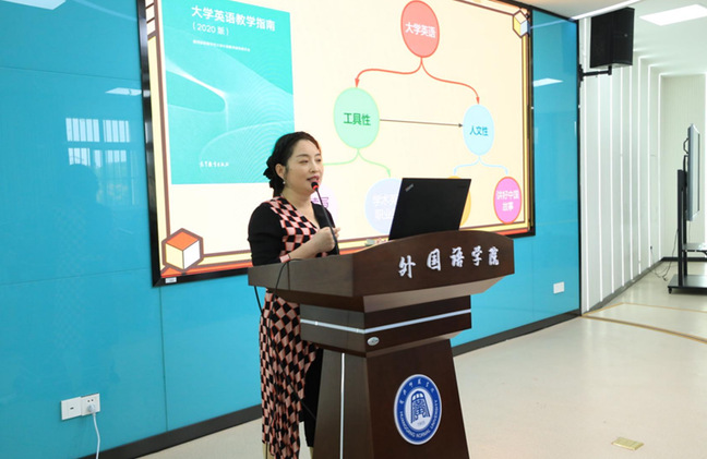 谢春林的报告首先回顾了国家级一流本科课程建设的原则、理念和推进条件,并针对国家级一流本科课程认定结果进行了详细分析和解读。她真诚地向与会老师分享了国家级一流本科课程《大学英语》的建设与申报经验,提出了非常实用的意见和建议。