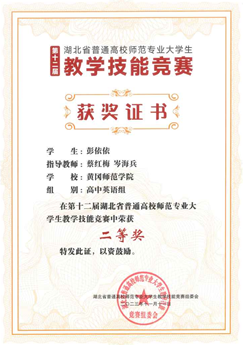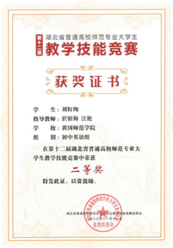 现场决赛包括教学设计、课件制作、即席讲演和模拟授课等环节,我院选手与华中师范大学、湖北师范大学等强劲对手同台竞技,表现出色,展现了扎实的教学技能和良好的精神风貌,最终荣获二等奖。