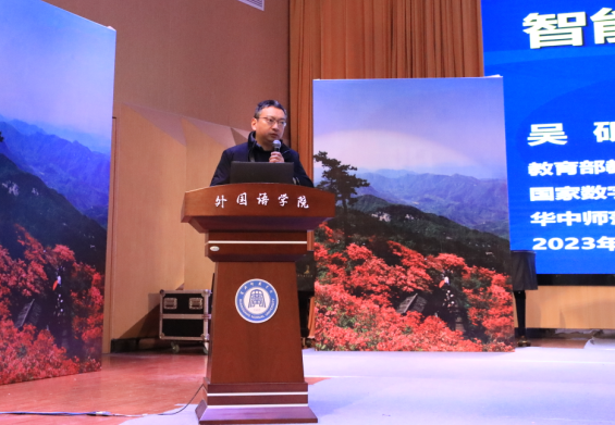 特邀报告环节,上海外国语大学校长助理胡开宝、国家数字化学习工程技术研究中心副主任吴砥、武汉大学外国语言文学学院副院长程向莉、中南财经政法大学williamhill英国副院长阮全友、williamhill英国院长岑海兵、武汉城市学院外语学部主任崔艳萍、文华学院外语学部主任助理叶知民7位专家围绕“技术赋能外语教育”主题,分别作了题为《语料库技术赋能的外语教育体系构建:内涵与路径》《通用智能技术支持下的教学创新》《武汉大学数智时代大学英语教研共同体实践探索》《数字技术赋能外语教育的韧性发展》《智慧教学,智能测评:WEtest/ WElearn 在外语教学中的多维应用》《技术赋能英语词汇学习,夯实语言基本功》《大学生英语词汇学习策略分析》的主旨发言。7位专家各抒真知灼见,报告精彩纷呈,获得了与会嘉宾的高度认可。大家热烈讨论,一致认为此次研讨会专家阵容强大,大会学术氛围浓厚,既是一场理论知识的盛宴,又是一个与专家面对面交流的平台。