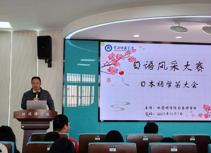 副院长郑新刚致开幕辞,对前来参赛以及观赛的院内外师生表示欢迎。他指出,诵读经典能够品味日语文化、提升文化素养,通过歌唱也能了解日本多元文化、激发学习热情。希望选手能在此次日语风采大赛中展现风采,分享学习经验,并预祝大赛圆满成功。