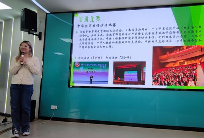 比赛环节之后,来自日语202001班的史泽慧和文伊曼分别分享了她们参加笹川杯全国高校日本知识竞赛和中华全国日语演讲比赛的心得体会和学习日语的经验方法。两位学生代表充分展现了日语专业优秀学子的风采,激发了大家参加专业竞赛的热情,拓宽了低年级学生的专业视野。