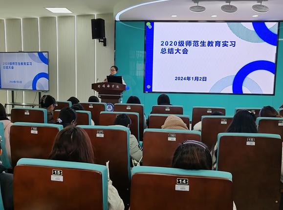 2024年1月2日,我院在外语楼202会议室召开2020级师范生教育实习总结大会。2020级全体师范生与指导教师参加会议,英语系主任张慧芳主持会议。