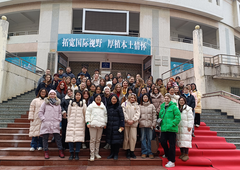 留学生们一个接一个地进入教室,在同学们的引导下交错就坐——沟通与交流由此而始。