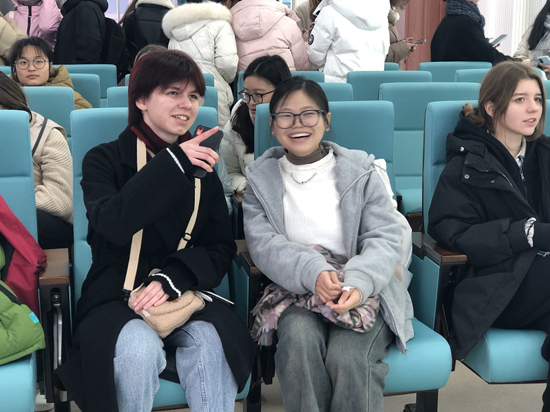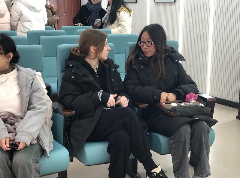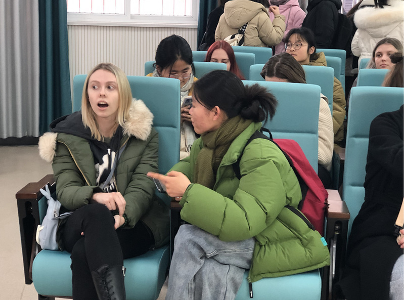 留学生们一个接一个地进入教室,在同学们的引导下交错就坐——沟通与交流由此而始。