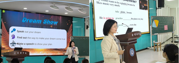 授课环节,王斯莉老师和彭依依同学根据人教版初中英语八年级上册Unit6 Section A I'm going to study computer science分别进行教学展示。