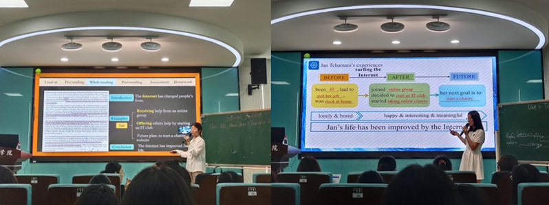 教学展示环节由副院长陈曼主持。来自长江大学williamhill英国及我院共计4名教育硕士、6名本科生参加了本次教学展示活动。活动分研究生和本科生两个组别进行,研究生组进行了师范生技能展示,本科生组进行了师范生同课异构教学展示。来自长江大学的蒋娟、张婷及我院蔡红梅、於银梅和刘慧芳等5位老师对上述活动进行了现场点评。在交流展示中,两校学子教学设计各具特色、教学方法灵活多样、教学仪态端庄自然,同学们扎实的教学基本功,良好的课堂掌控能力,给大家留下了深刻印象,充分展示了两校在职前英语教师培养上取得的成效。