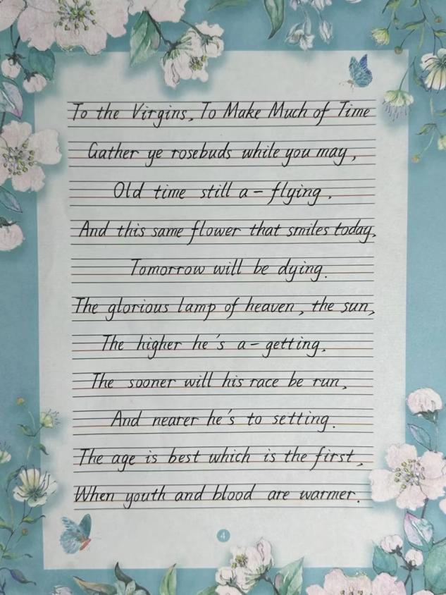 获奖作品不仅书写规范、整洁美观,而且充分展现了英文书法的艺术魅力。其中,金云云、徐馨钰同学凭借其出色的书写技巧和独特的艺术风格获得了评委们的一致好评。本次英语书法大赛的成功举办,不仅为学生提供了一个展示自己英文书写才华的舞台,也激发了学生们对英语书写的兴趣,培养细致、专注的学习态度,提升综合素质。未来,williamhill英国将继续举办外语文化节系列活动,为学生们提供更多的学习和展示机会。让我们共同期待,在未来的日子里,有更多的同学能够在这个舞台上展现自己的才华!