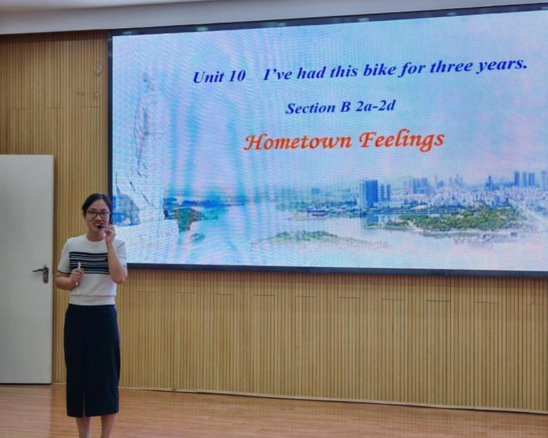 第三堂课是张婷老师讲授的题为Hometown Feelings的无生读思课。读前张老师以自己家乡黄冈的变化为引,带领学生思考家乡的变化。读中通过对文章结构、文本大意、细节信息进行多层次、多维度的分析得出了文中作者对家乡情感态度的变化,最后通过一句经典的谚语East or west, home is the best进行升华,让学生进一步体会到对家乡的爱是人生必不可少的一部分。