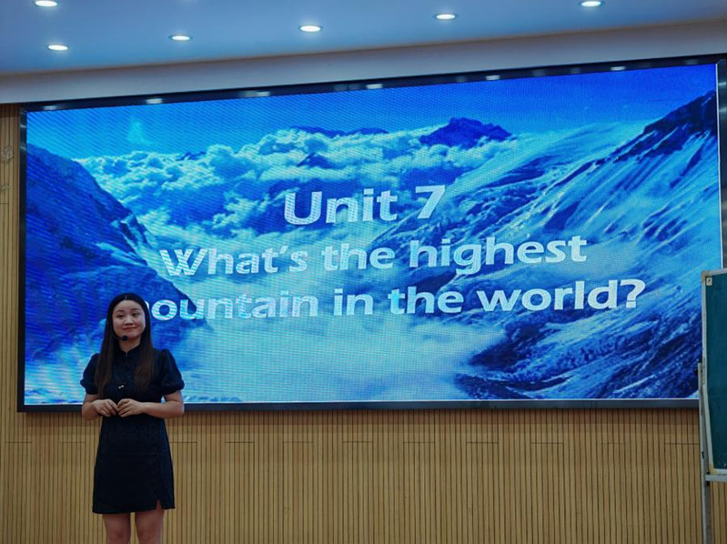 周童老师呈现的是一堂无生读思课。周老师以精美、动态的教学课件带领学生深入世界旅游的情境,由此导入主题What’s the Highest Mountain in the World。在教学过程中,周老师组织学生在生动有趣的情境中完成略读、精读任务,探讨文章主题,分析文本内容;开展小组讨论,思考攀登者所面临的挑战和所取得的成就;最后升华主题,引导学生思考学习、生活中的攀登精神。