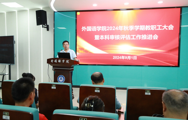 院长岑海兵回顾了学院暑期工作,对上半年工作情况进行总结分析,全面谋划部署了下半年重点工作。他强调了本科审核评估工作的重要性和紧迫性,就审核评估工作进行再动员、再推进,要求全院教职工提高站位、明确任务,要以本次本科教育教学审核评估为契机,加强内涵建设,推动学院事业发展。会上岑海兵做了以《语言为帆,破浪前行 助力学校国际化进程》为题的报告,系统阐述了外语学科扩点建设规划,明确了学院中期发展方向。