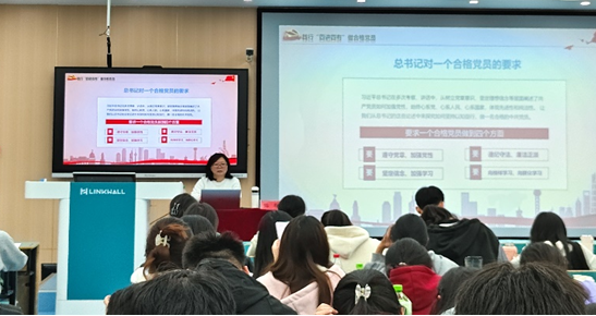 陈琛主要围绕三个方面进行授课:一是共产党员应如何发挥先锋模范作用;二是大学生党员如何坚定共产主义信念;三是如何践行“四讲四有”成为合格的大学生党员。首先,她阐释了发挥先锋模范带头作用的关键意义,强调大学生党员要在学业上树立榜样,积极投身于社会实践和志愿服务,以实际行动体现共产党员的初心与使命;接着,她通过具体而生动的案例及深入的分析,讲解了共产主义信念的内涵与时代意义,激励大家坚守理想信念,持续自我提升,为共产主义事业的伟大目标而不懈努力;最后,她详尽解读了“讲政治、有信念;讲规矩、有纪律;讲道德、有品行;讲奉献、有作为”这一“四讲四有”原则的具体要求,并结合现实案例,阐述了如何在日常的学习、生活及工作中具体落实这些原则。她特别强调,大学生党员应始终以“四讲四有”为准绳,不断提高个人素质与能力,展现出党员应有的先锋模范作用。