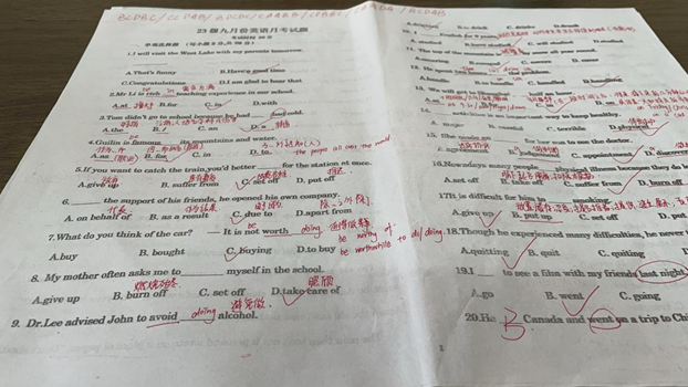 其次便是批改作业了。其实在学生阶段也帮老师改过作业,但与我现在作为实习老师的心理路程是完全不同的。学生阶段更注重答案的正确率,而现在我更注重怎样通过本次作业找到学生的薄弱处。