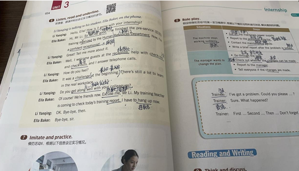 最近的实习还是以听课为主,令我印象最深的就是夏妍老师所讲的公开课,她讲的是高中选择性必修一第二单元的阅读部分,她以图片的形式导入,非常吸引人,在她的课上,我看到学生都能够积极的参与,充分发挥积极性,尤其是在最后的输出环节,学生以小组为单位进行讨论,编造对话,最后再通过展示的方式来检验讨论的结果,既调动了学生的积极性,又检测出了学生的学习成果和输出,这一点非常值得我学习。