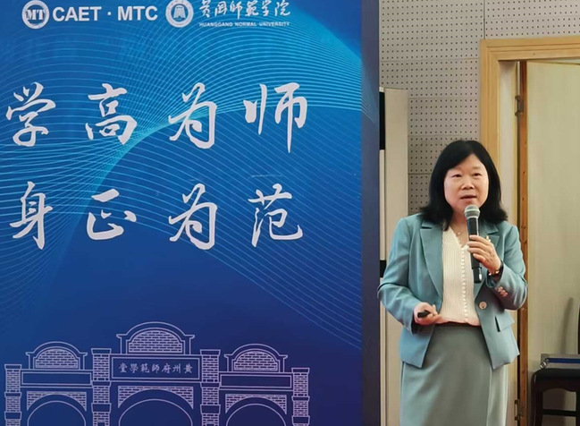 (华中师范大学闫春梅教授作题为“Maximizing the effects of the course on English teaching skills development”的主旨报告)