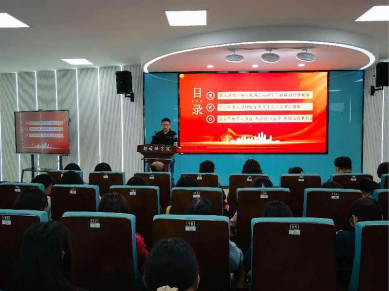 动员大会后,学院党委书记黄佑和以“深入贯彻中央八项规定精神学习教育动员部署”为题,为全体师生党员讲授党课。他详细阐述了深入贯彻中央八项规定精神学习教育的具体要求。他强调,全体师生党员要深刻领会中央八项规定的精神实质,切实增强贯彻落实的自觉性和坚定性,要严格遵守各项纪律规定,以高标准、严要求规范自身言行,始终保持良好的工作作风和精神状态。随后,黄佑和深入解读了中央八项规定精神及违反八项规定清单。他指出,八项规定是对党员干部的基本要求,是不可触碰的红线,每一位党员都要时刻保持警醒,坚决杜绝形式主义、官僚主义、享乐主义和奢靡之风;要以此次学习教育为契机,进一步加强师德师风建设,提高教育教学质量,努力为党育人、为国育才。