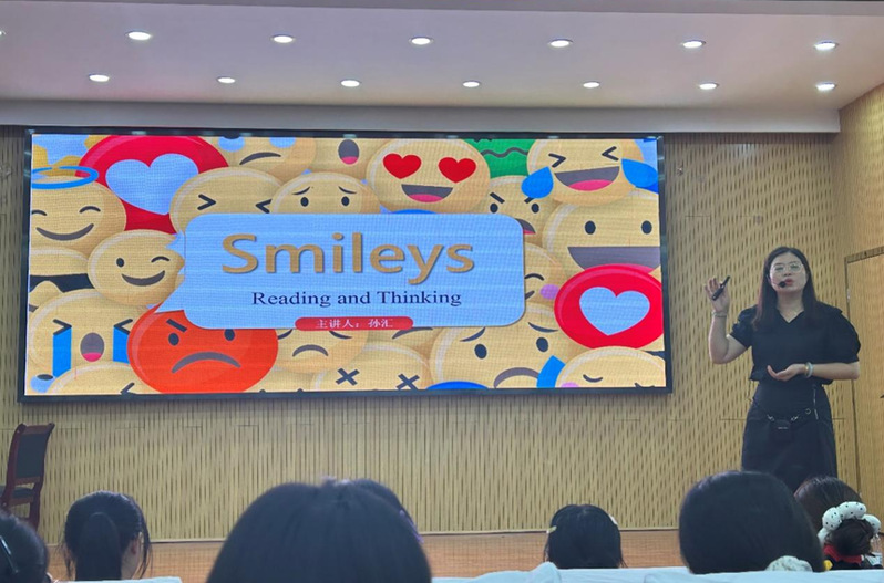 活动伊始,黄州中学英语教师孙汇呈现了一堂精彩的高中英语阅读课(外研版选修二 Unit 3 “Smileys”)。课堂以英语学习活动观为指导框架,分设“读前预测”“读中文本分析”“读后迁移创新”等环节,教学设计环环相扣,富有层次。孙老师通过富有启发性的提问、同伴合作讨论等互动方式,有效激发学生思维与参与热情;精美课件的呈现和任务分层的设计,充分展示了新课标理念在教学实践中的深入融合。