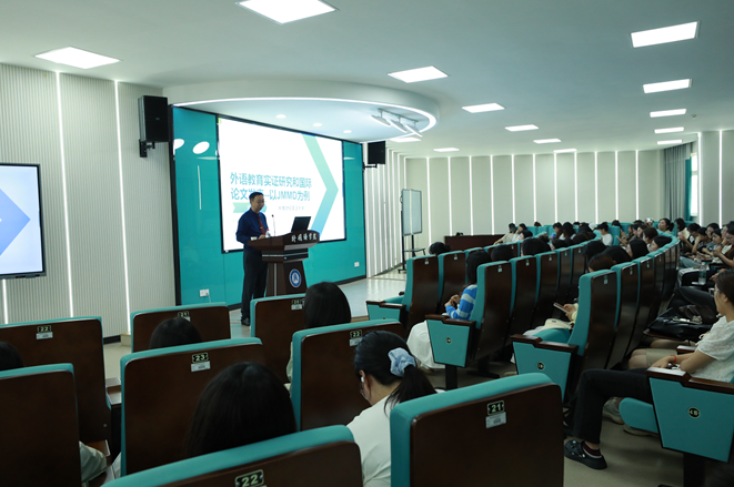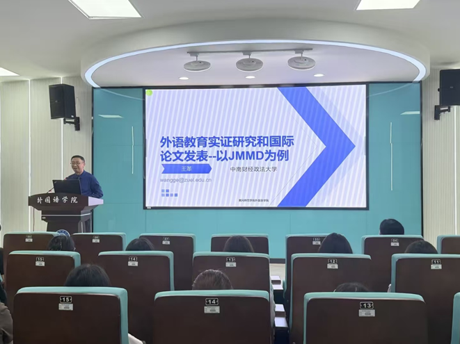 6月25日,中南财经政法大学王革教授应邀在南区圆楼202会议室作题为《外语教育实证研究和国际论文发表》的学术报告。报告会由我院副院长陈曼主持,我院研究生及硕士生导师一百余人参加了此次活动,现场气氛热烈,反响良好。