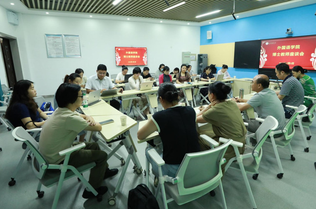 岑海兵充分肯定了与会教师在2025年上半年取得的工作成绩,并指出博士(生)教师作为学科骨干力量要激发活力、增强动力、加强协作、凝聚合力,不断提升教科研水平和成果产出,实现学院内涵建设与个人职业发展的双跃升。他深入剖析了外语学科专业发展的现状和面临的挑战,并对下阶段的重点工作方向和发展策略进行了系统谋划,他希望全体教师早谋划、快行动、稳落实,持续优化工作举措,产出更多标志性成果。他强调,学院要通过系统性规划与资源整合,凝练学科优势、彰显学院特色,要进一步调整优化学科专业布局,推进跨学科融合创新,提升学科建设的整体水平,奋力推动学院事业发展再上新台阶。