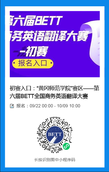 为了促进我国翻译教育事业的发展和专业人员翻译水平的提高,调动广大翻译爱好者,尤其是高等院校在校大学生提高翻译及应用技能的积极性,为国家未来的翻译事业和经济建设培养和输送具有较好翻译基础的青年人才,促进国际文化交流,使世界了解中国,使中国走向世界,中国城市商业网点建设管理联合会国际商务交流与外语研究分会(简称:中国城商联外研分会)将举办第六届BETT全国商务英语翻译大赛,现将相关事宜通知如下: