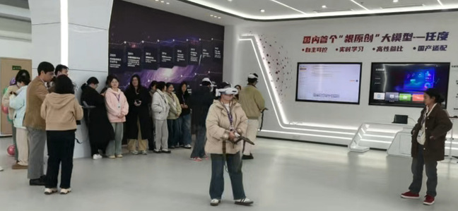 在跨界应用区,学生们沉浸式体验了“任度·素问”中医大模型的诊疗服务,亲身感受了语言智能在医疗健康领域的创新应用,真切领略了科技赋能下“人机共译”的未来工作场景。